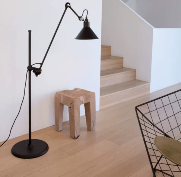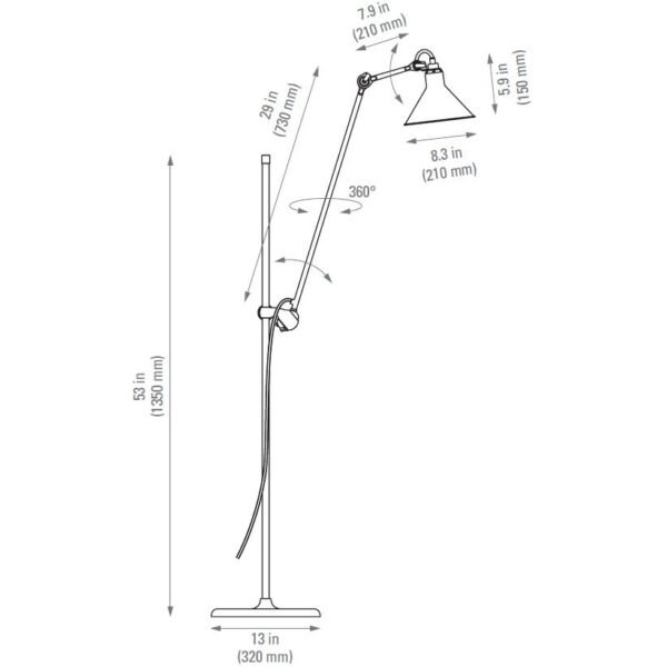 The mobile lighting solution was developed by Gras in the 1920s to improve working conditions for hundreds of workers in ordinary machine shops, research laboratories, and design studios. A form reduced to its pure function, free of unnecessary ornament, was the ideal object-tool according to Le Corbusier’s ideology. Lampes Gras was used by Corbu in his design offices and architectural projects, and it was also used by Eileen Gray, Man Ray, and Robert Mallet-Stevens. No screws or welded joints are used in the cast steel frames; each part contributes to the utmost effectiveness. LED, CFL, or incandescent bulb (not included); E12 base; maximum 40W. The product is made in China.