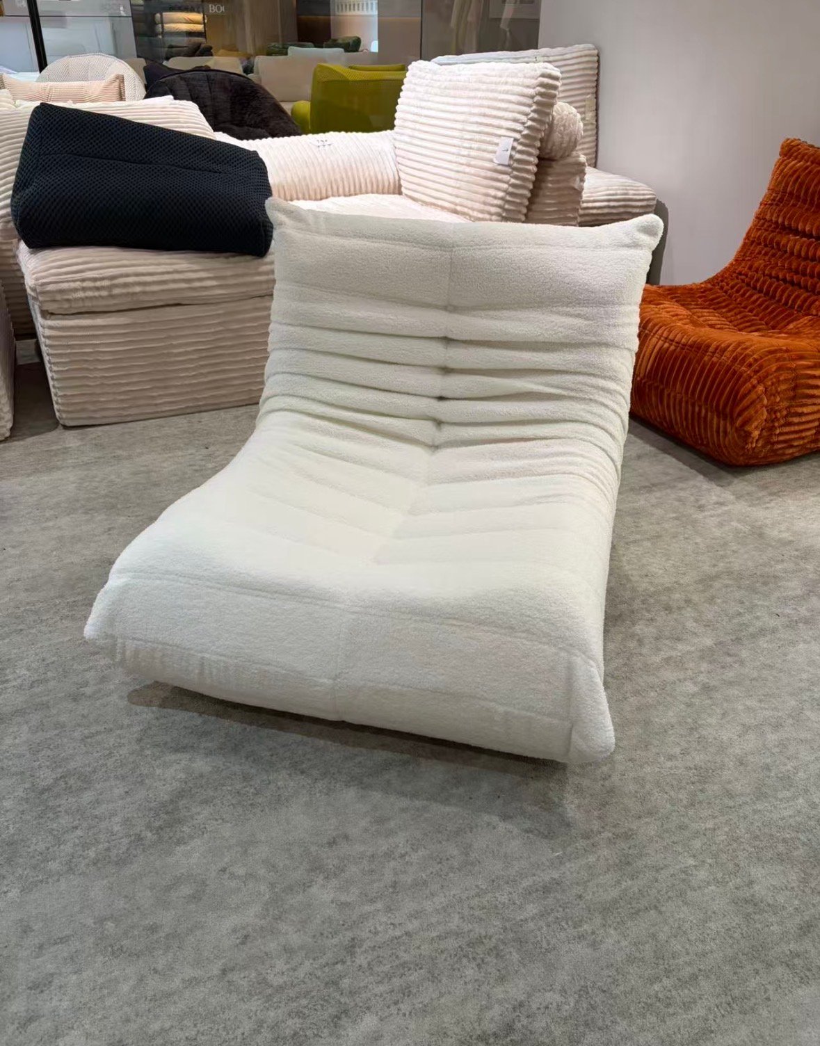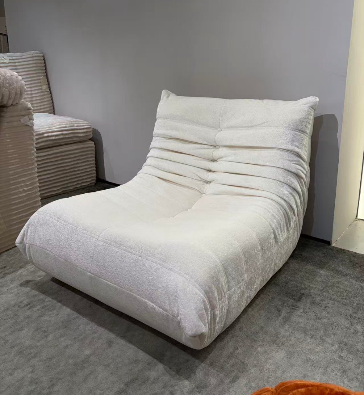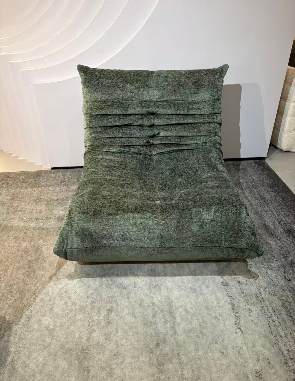 Dimension & weight Height 28 ” Width 32 ” Depth 39 ” Seat height 14-15 ” Seat 1 place Weight 23.2 lb Modern Togo High Quality Floor Lounge Chair Factory Direct Order – Premium Fabric This sculptural floor lounge chair features a low, modern silhouette with deep comfort and supportive back design. Perfect for living room, bedroom, reading corner or gaming space. High quality sponge filling – firm yet comfortable Durable premium fabric Minimalist modern design Very stable structure Brand new condition Available Colors & Quantity: Corduroy 2569-10 Beige – 2 pcs (Sold) Suede White – 3 pcs Corduroy 2569-36 Gray – 1 pc Corduroy 2569-25 Orange – 1 pc Suede Green – 1 pc (Sold) Beige Corduroy $239 (Sold) White Suede $249 Gray Corduroy $249 Orange Corduroy $259 Green Suede $269 (Sold) Limited stock – first come first serve. Price range: $239 – $269 depending on color.